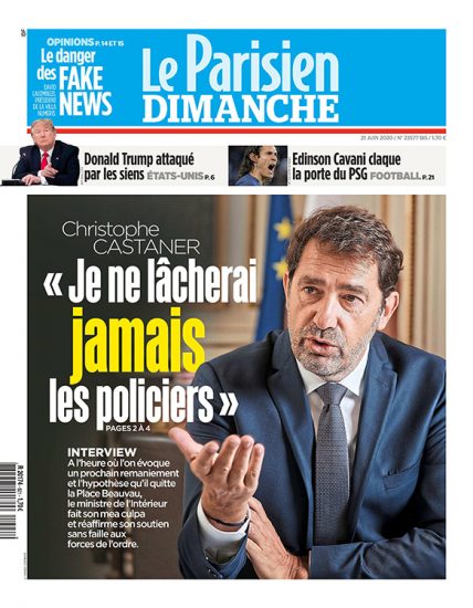 Castaner « assume de bousculer les choses » ? Le Parisien Dimanche assume, lui aussi, de malmener le journalisme. D’organiser la médiation entre politiciens tracassés, et de servir de porte-voix à un ministre dans l’embarras dès que celui-ci lève le petit doigt : « Si on le dit fragilisé, il souhaite rester ministre de l’Intérieur ». De concevoir le journalisme politique comme la simple transcription des bruits de couloir qui font trembler l’Intérieur. De ne poser aucune question réellement embarrassante sur les violences policières. D’entretenir la déconnexion des gouvernants en exposant leurs états d’âme comme autant d’« exclusivités » qui aideront les commentateurs à brasser plus d’air que de coutume sur les plateaux télé. De ne percevoir les mouvements sociaux actuels, contre le racisme et les violences policiers, que comme de vulgaires toiles de fond au sujet de premier plan : Castaner partira ? partira pas ?